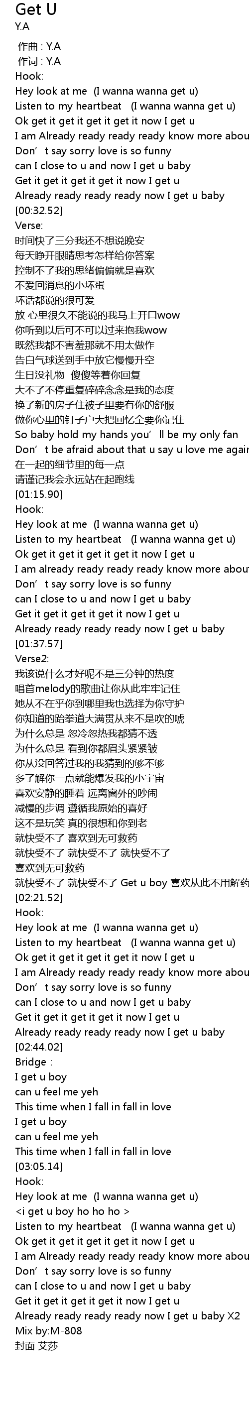 | [02:22.10] | Hey look at me I wanna wanna get u |