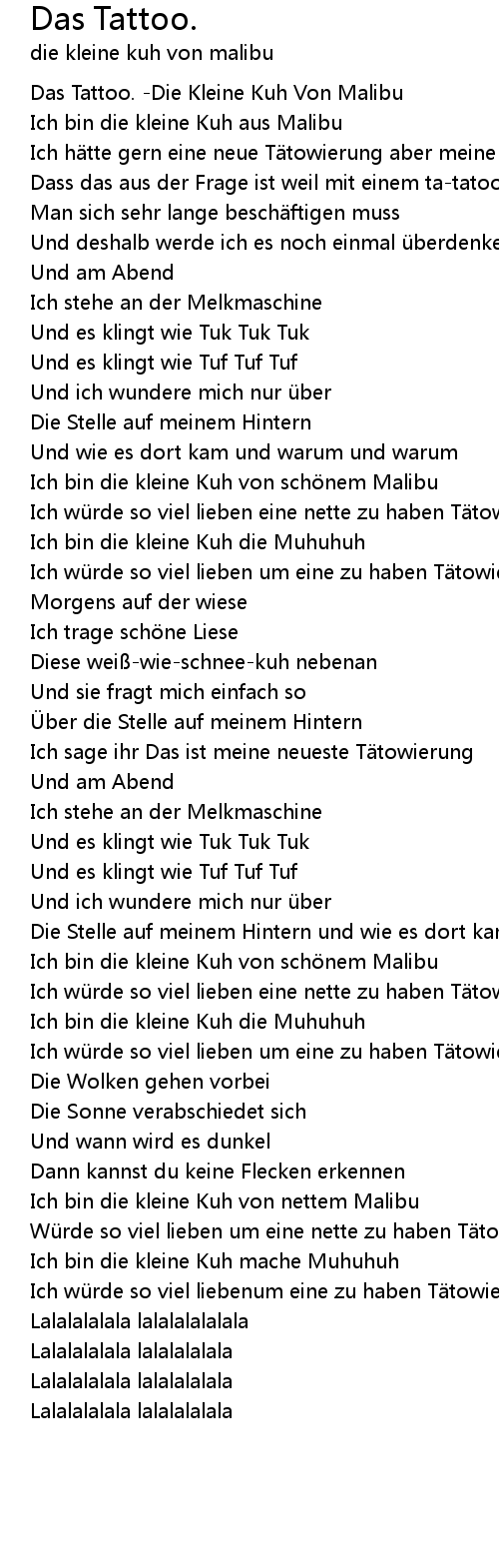 | [00:00.582] | Das Tattoo. -Die Kleine Kuh Von Malibu |