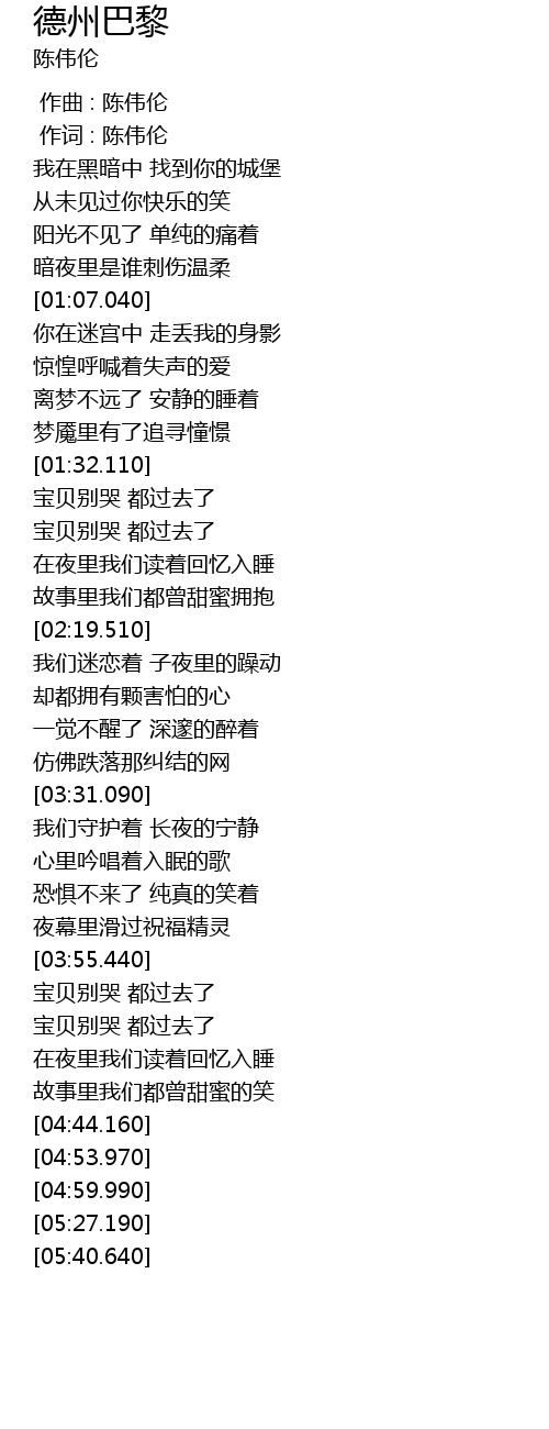 | [01:44.190] | 宝贝别哭 都过去了 |