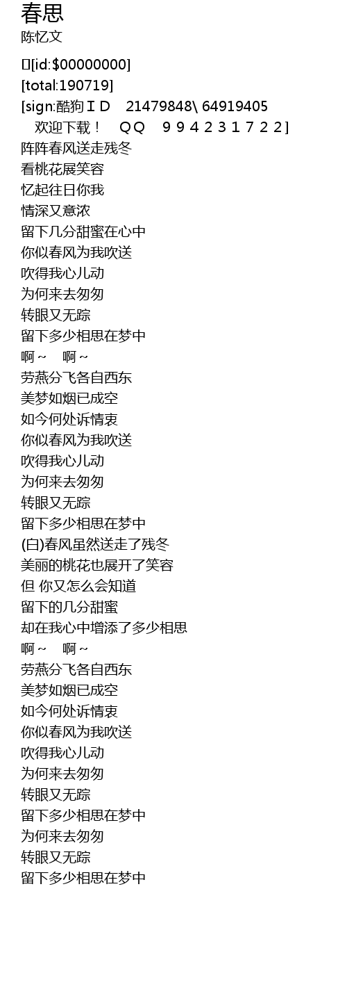 | [02:27.553] | 你似春风为我吹送 |