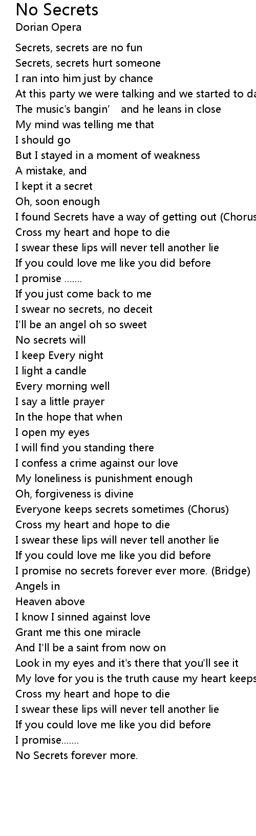 | My love for you is the truth cause my heart keeps no secrets Chorus | |