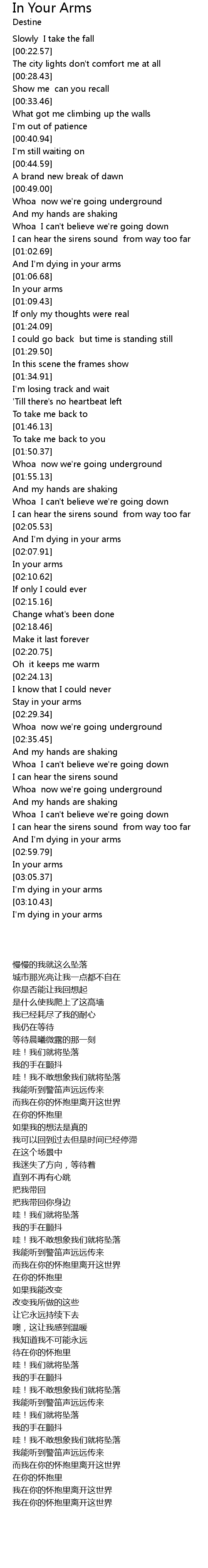 And I'm dying in your arms |