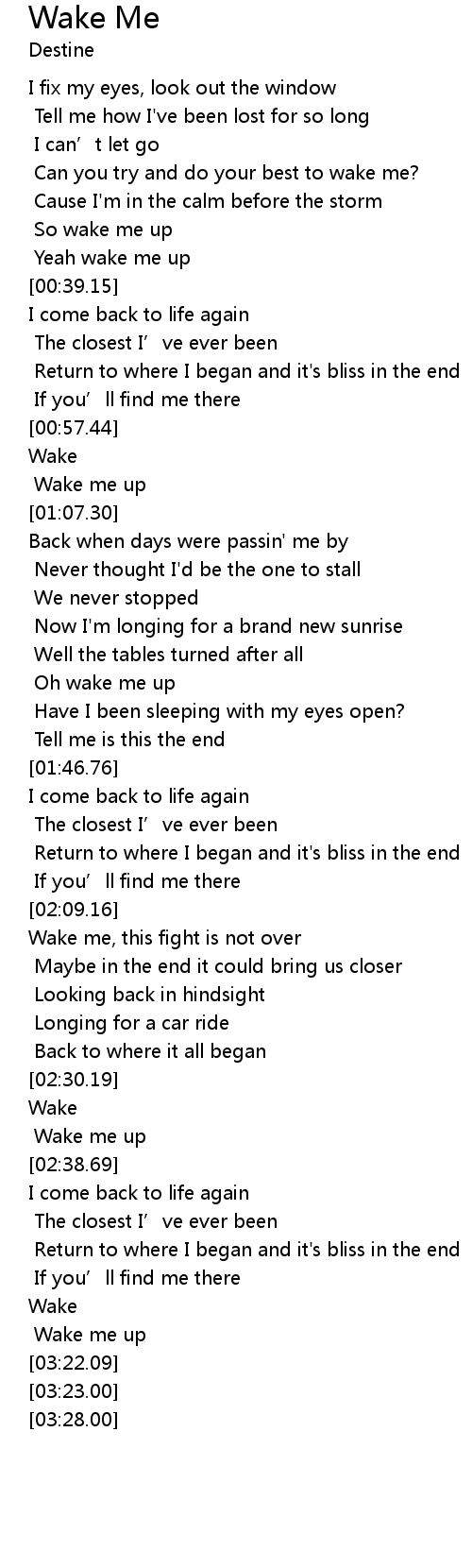 | [01:38.00] | Have I been sleeping with my eyes open? |