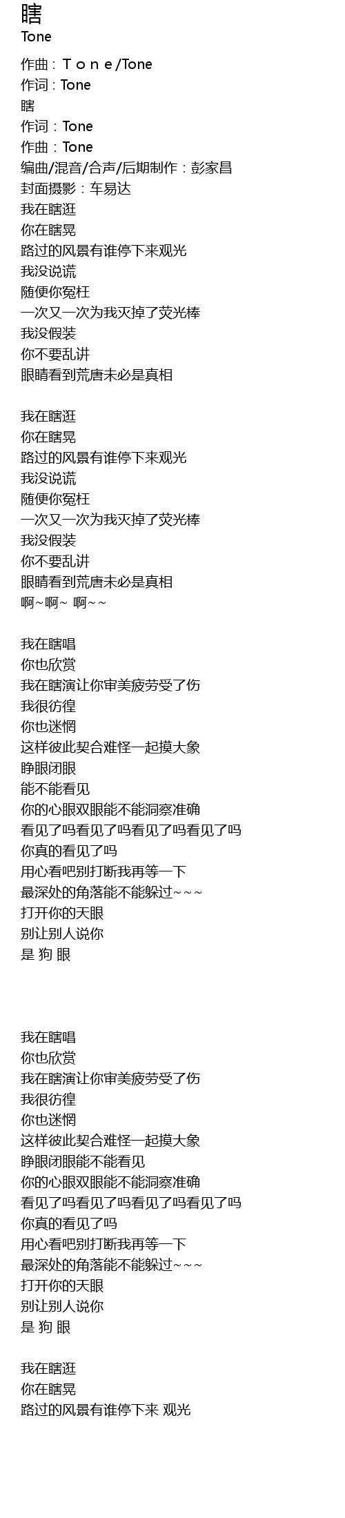 | 作词:Tone | |