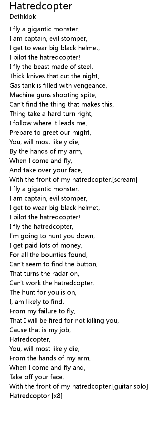 I fly the hatredcopter, |