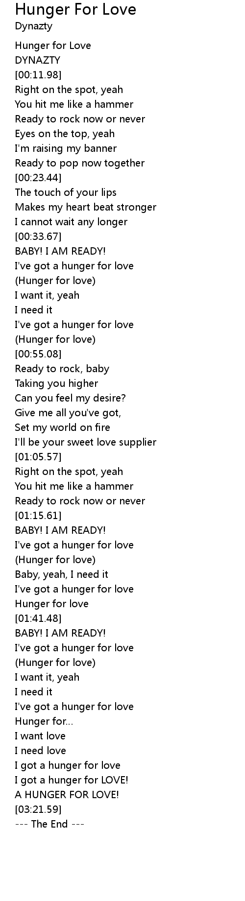 | [03:02.20] | A HUNGER FOR LOVE! |