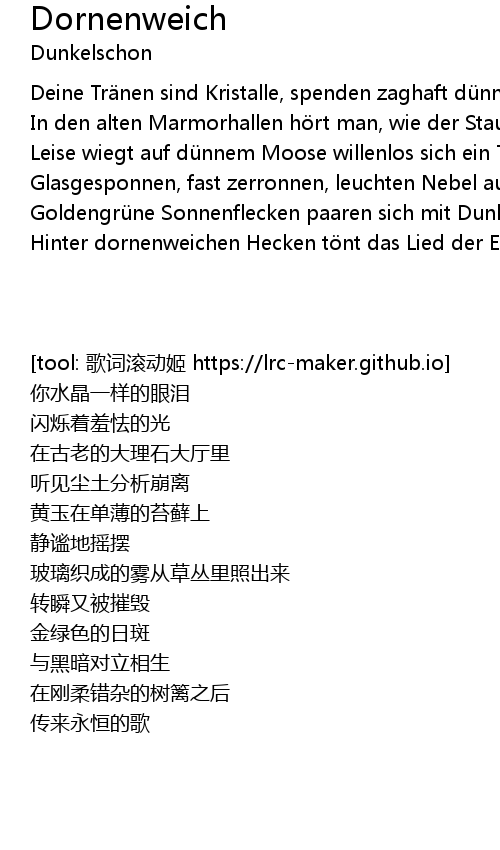 | Deine Tr nen sind Kristalle, spenden zaghaft dü nnes Licht. | |