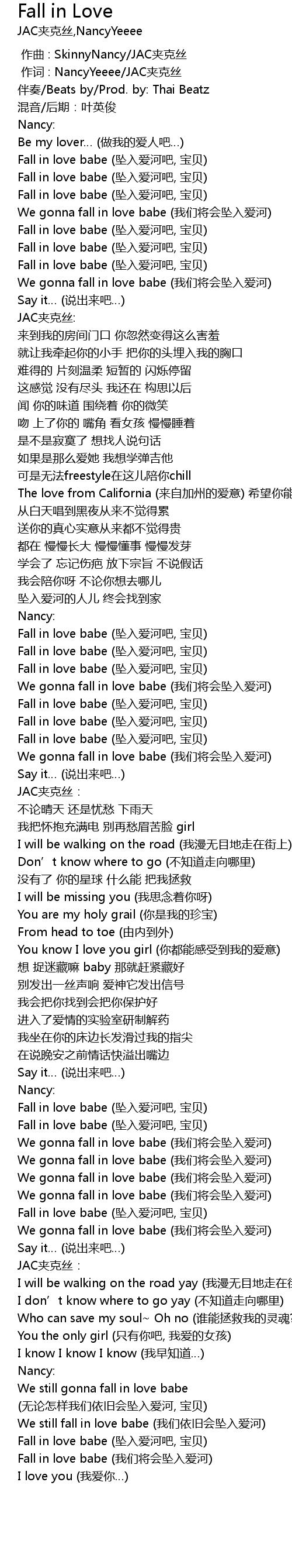 | [00:14.269] | Fall in love babe zhuì rù ài hé ba, bǎo bèi |
