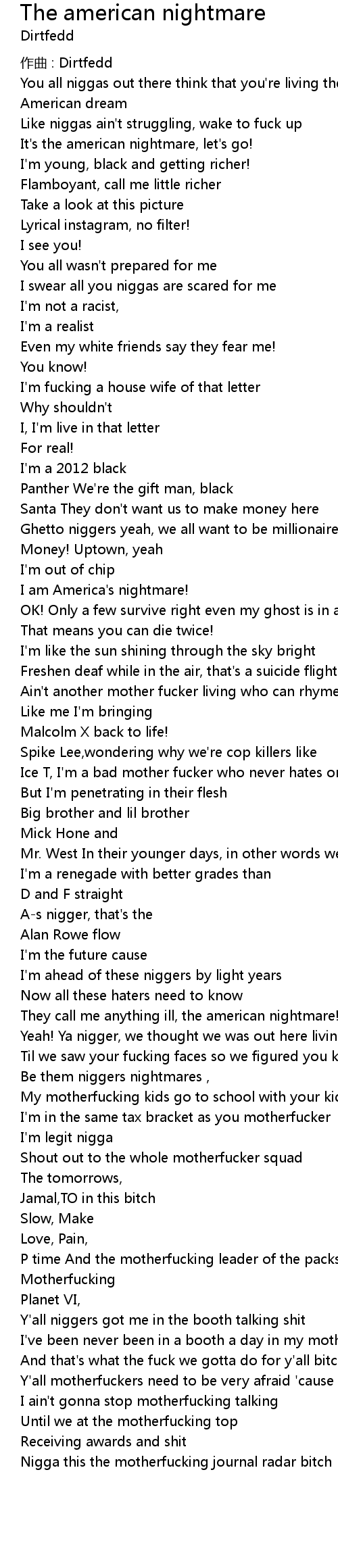 | Yeah! Ya nigger, we thought we was out here living the american dream ' | |