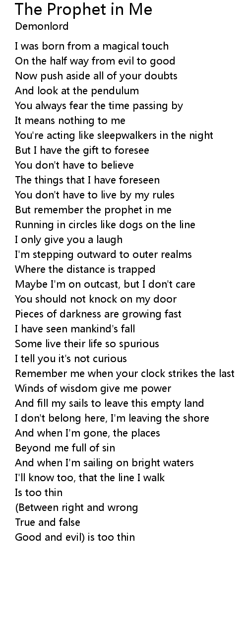 But remember the prophet in me |