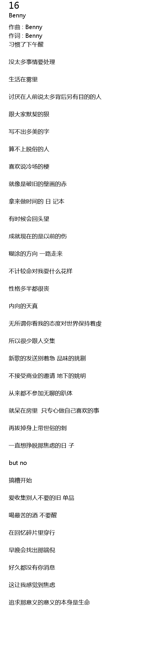 | 作词 : Benny | |