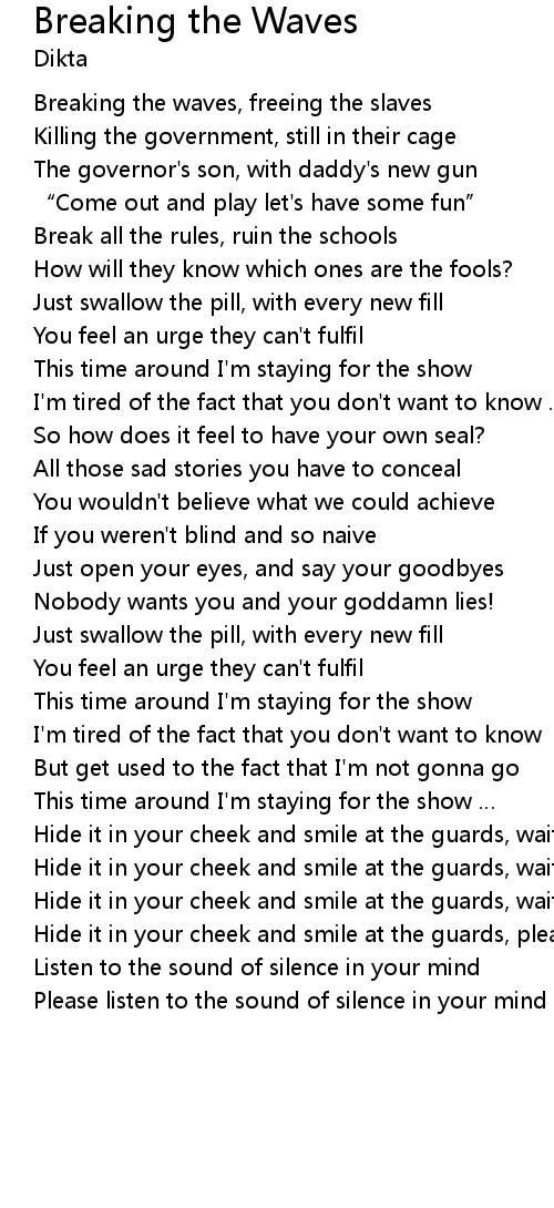 | Song | Breaking the Waves |