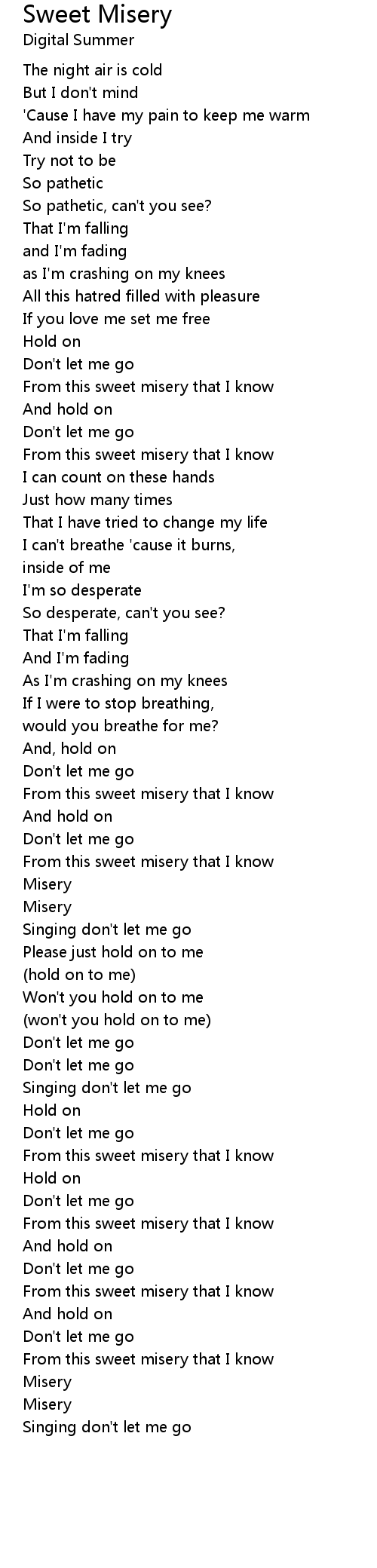 From this sweet misery that I know |