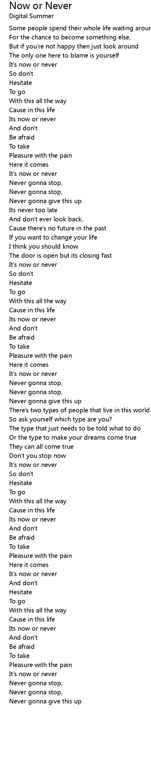 Its now or never |