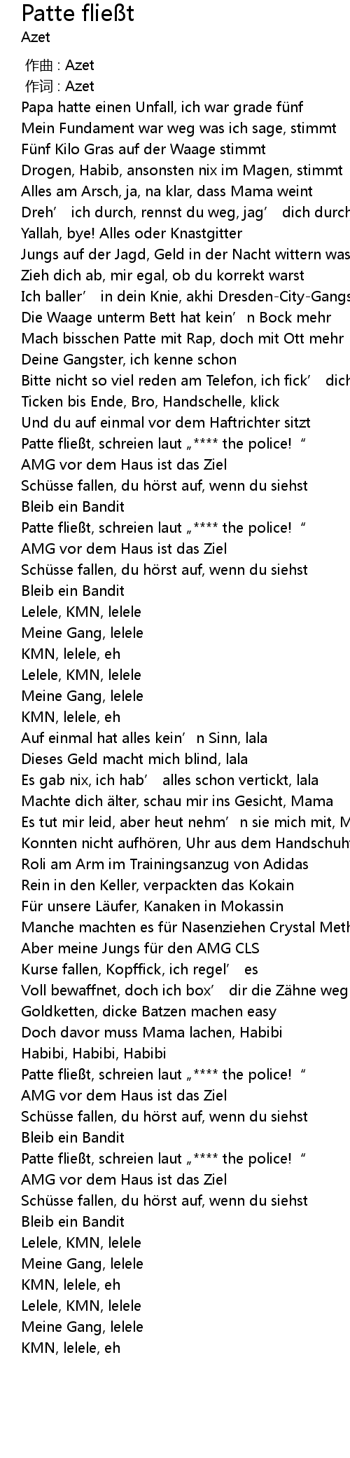 | [00:51.01] | Patte fließt, schreien laut „**** the police!“ |
