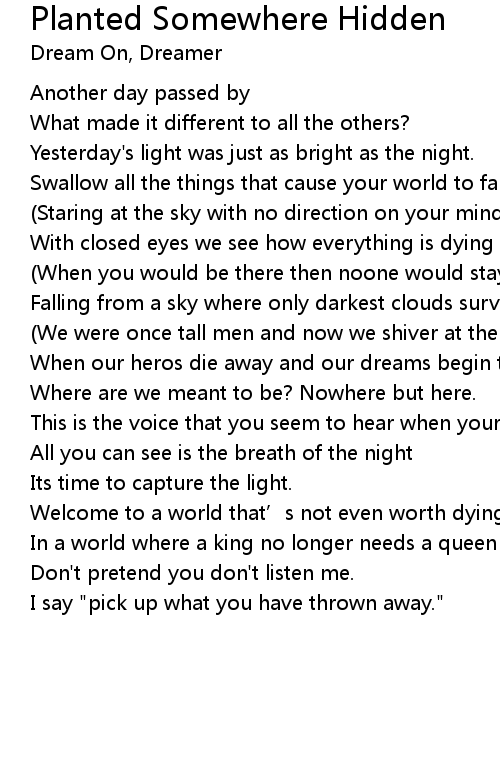 | Song | Planted Somewhere Hidden |