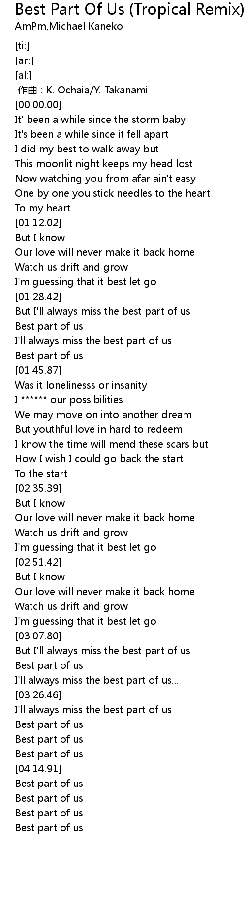 | [00:58.10] | Now watching you from afar ain' t easy |