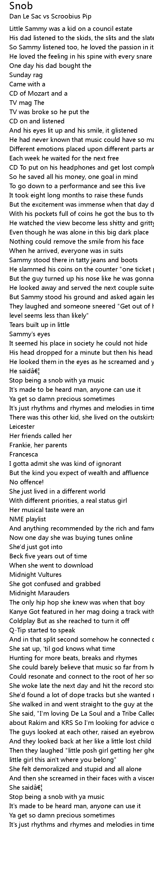 | Stop being a snob with ya music | |