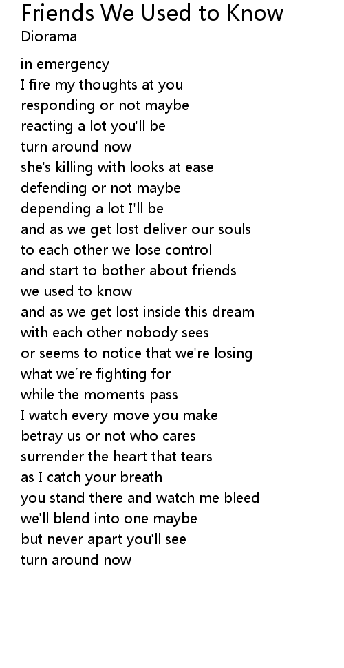 | Song | Friends We Used to Know |