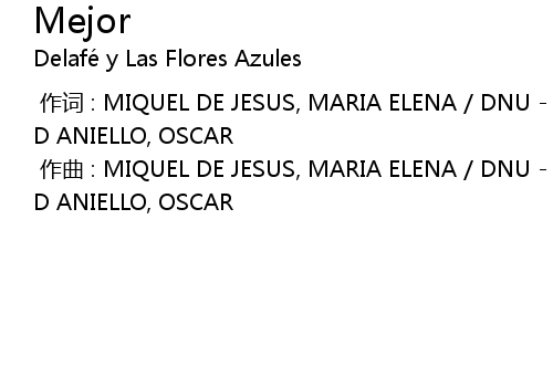 | [00:00.000] | zuo ci : MIQUEL DE JESUS, MARIA ELENA DNU ACEDO BLANCO, DANIEL D ANIELLO, OSCAR |
