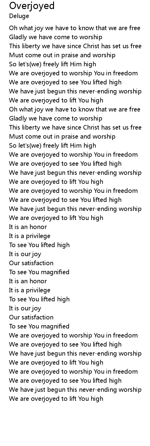 We are overjoyed to worship You in freedom |