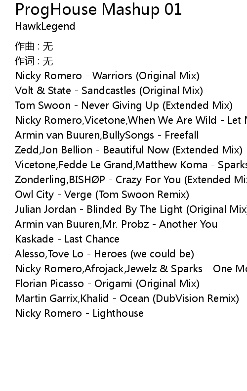| Song | ProgHouse Mashup 01 |