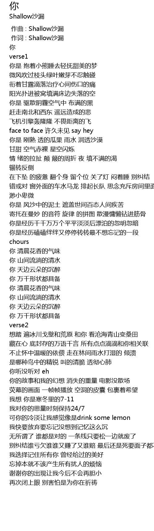 | [00:00.000] | 作曲 : Shallow沙漏 |