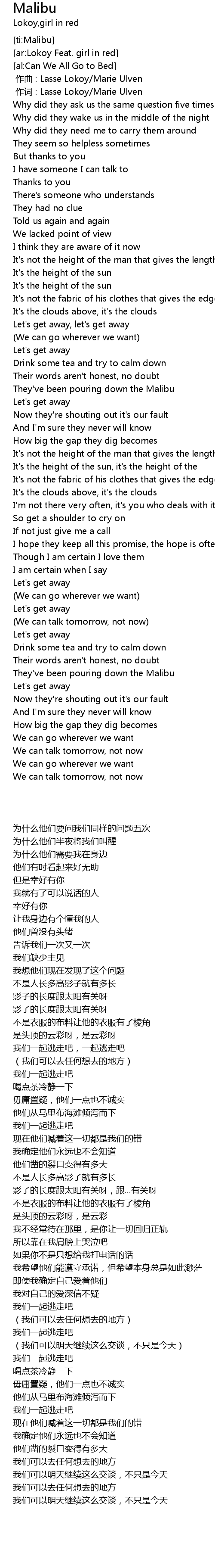 | [00:01.000] | 作词 : Lasse Lokoy/Marie Ulven |