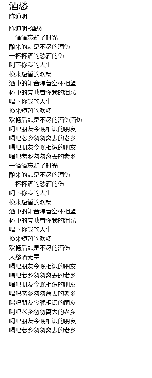 | [00:01.292] | 陈道明-酒愁 |