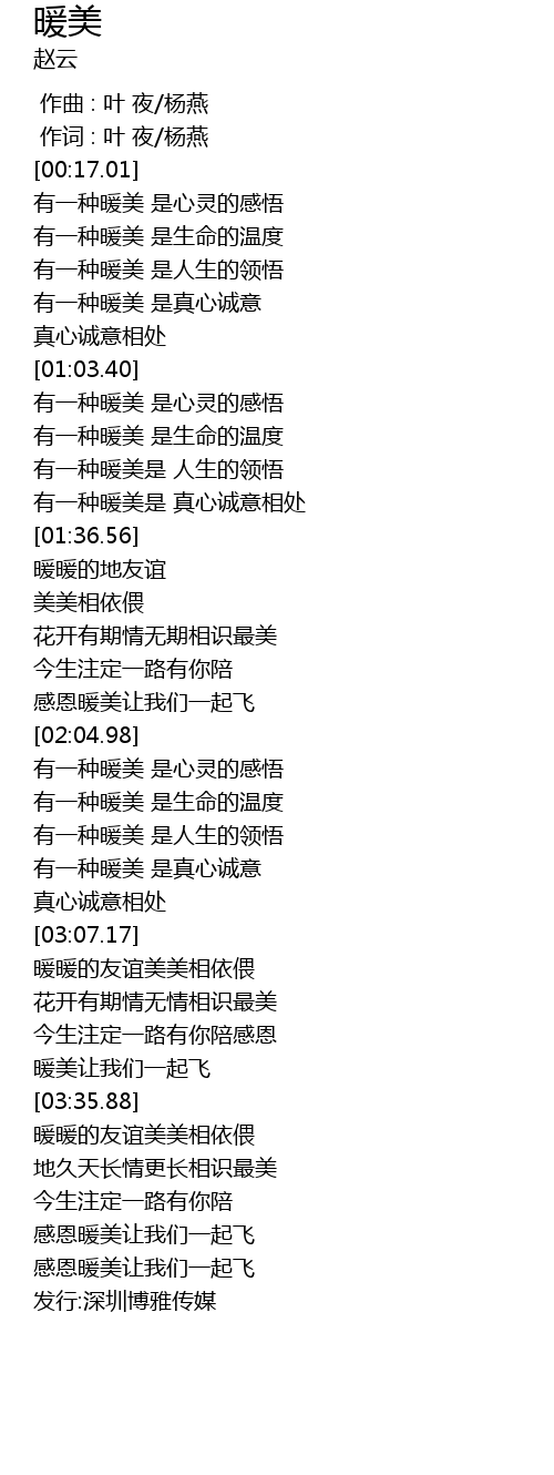 | [03:58.97] | 感恩暖美让我们一起飞 |