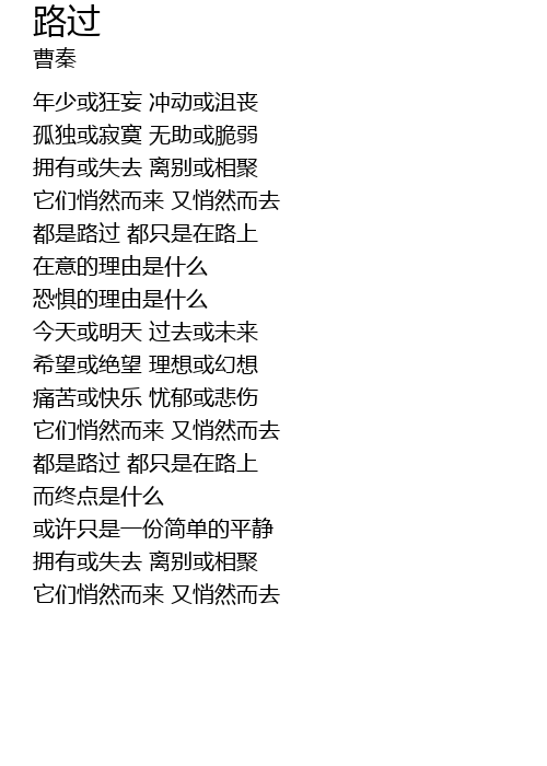 | [01:23.30] | 都是路过 都只是在路上 |