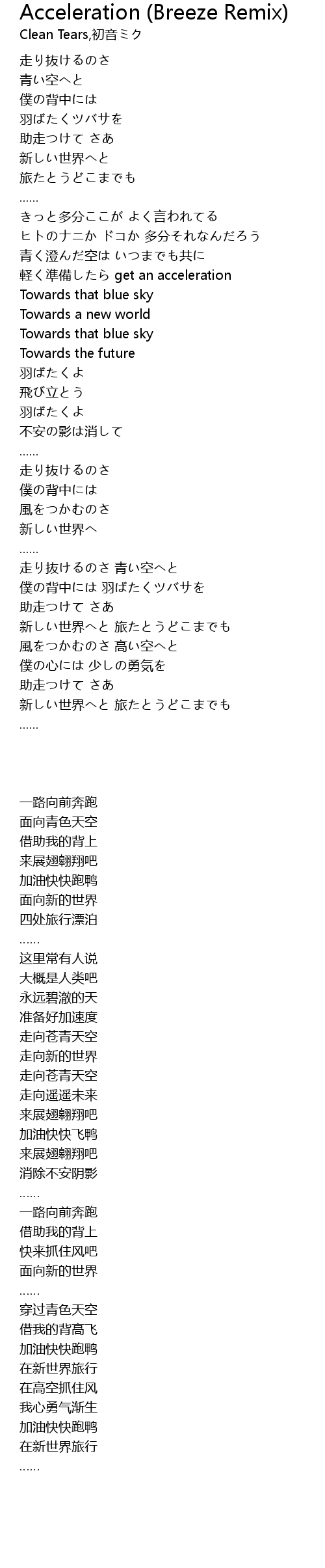 | [02:56.10] | 走り抜けるのさ 青い空へと |