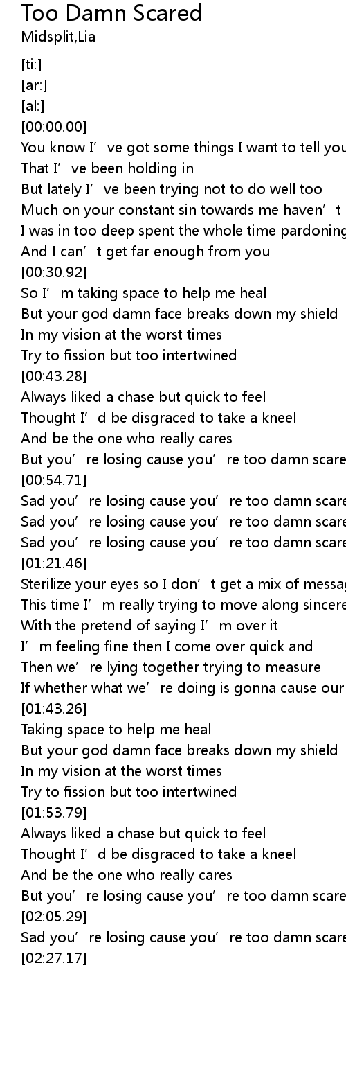 | [00:57.40] | Sad you’re losing cause you’re too damn scared |