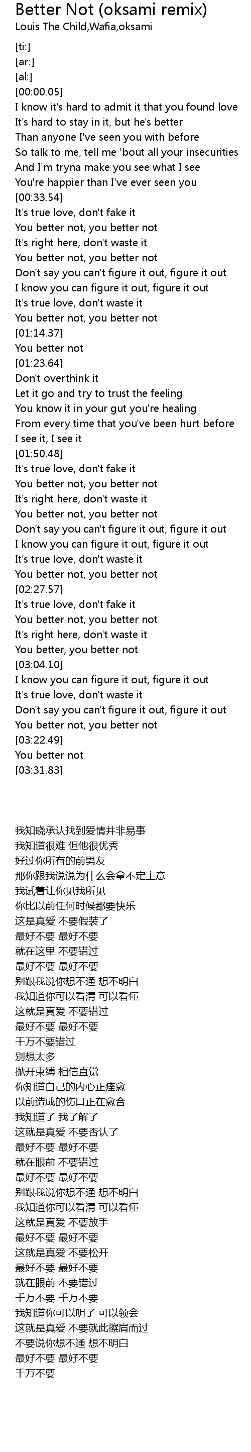 | [03:17.84] | You better not, you better not |