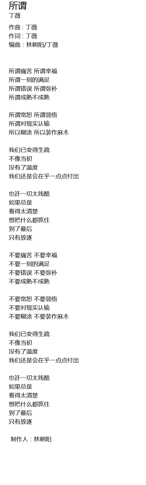 | 编曲:林朝阳/丁薇 | |