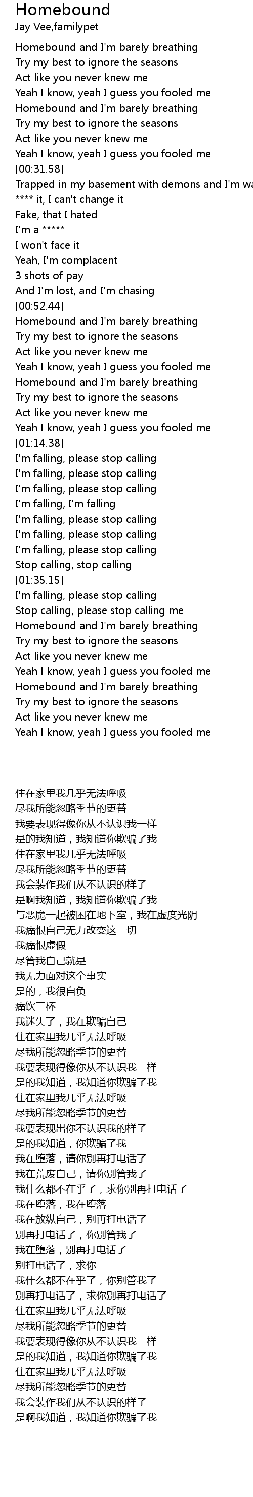 | [01:36.47] | I'm falling, please stop calling |