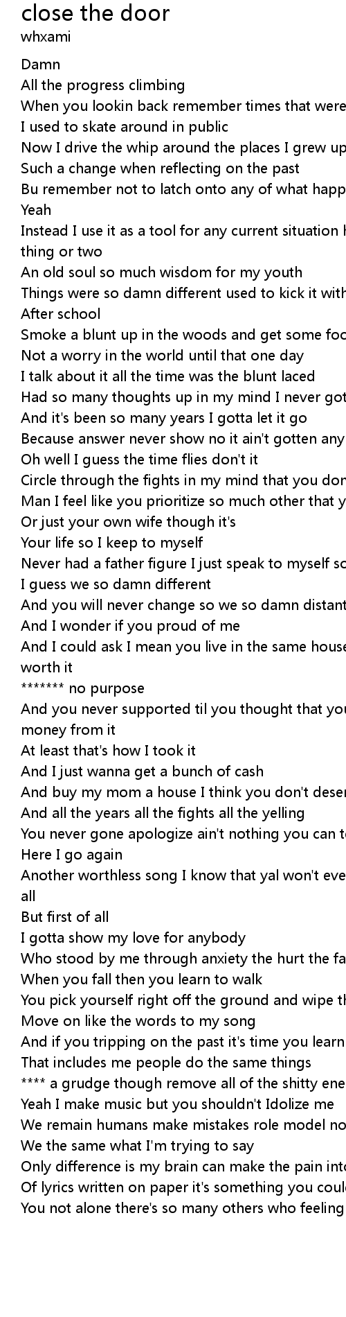 Had so many thoughts up in my mind I never gotten any closure |