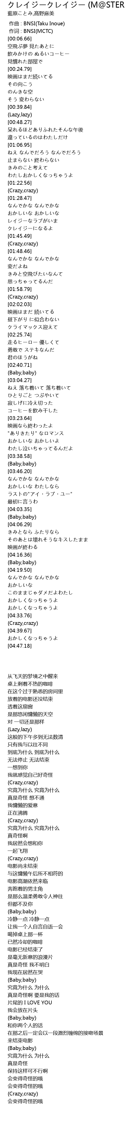 | [02:00.03] | (Crazy,crazy) |
