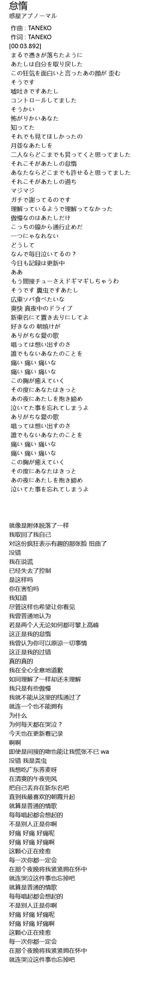 | Song | 怠惰 |