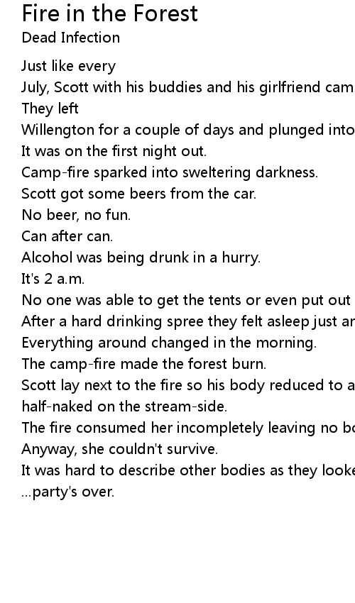 Scott lay next to the fire so his body reduced to ashes. his girlfriend lay half-naked on the stream-side. |