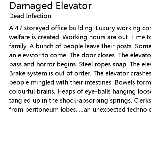 pass and horror begins. Steel ropes snap. The elevator falls quickly down. |