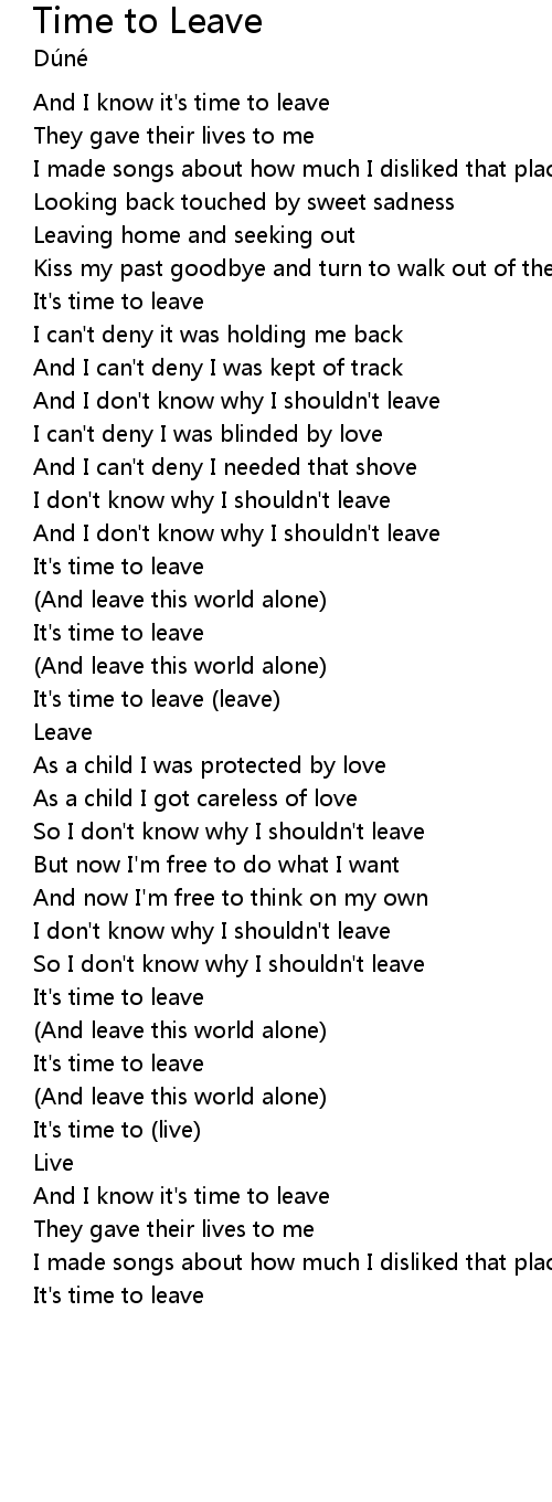 And I know it's time to leave |
