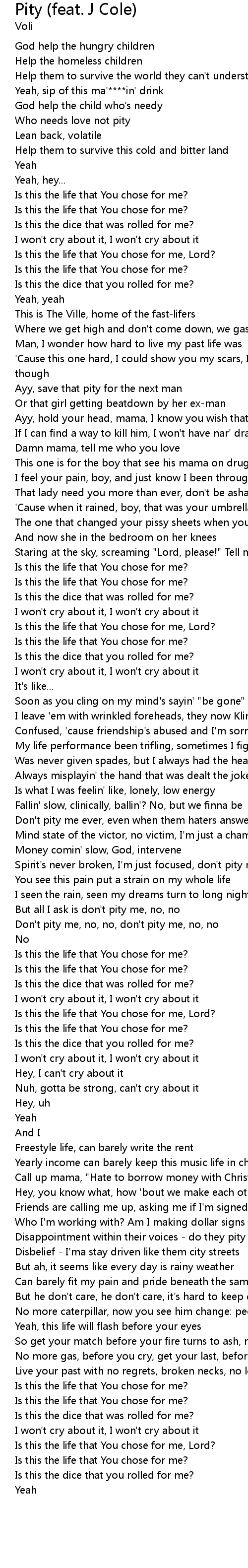 Spirit's never broken, I'm just focused, don't pity me, no no no |