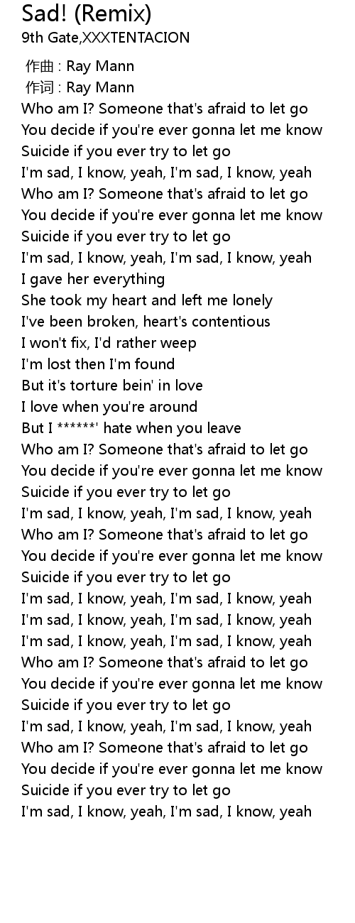 | [01:45.37] | I'm sad, I know, yeah, I'm sad, I know, yeah |