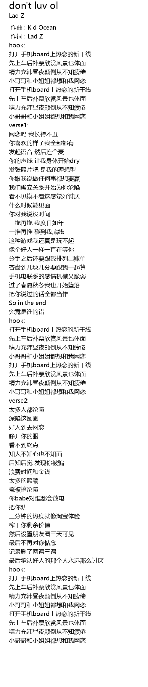 | [00:01.000] | 作词 : Lad Z |
