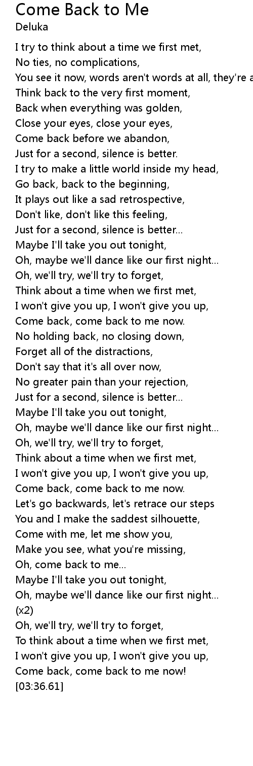 Oh, come back to me... |