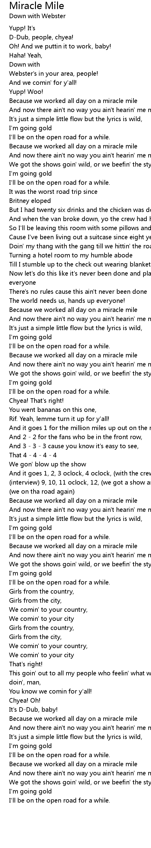 And it goes 1, 2, 3 oclock, 4 oclock, (with the crew) 5, 6, 7 oclock, 8 oclock, (interview) 9, 10, 11 oclock, 12, (we got a show and then) 1, 2, 3 oclock, 4, (we on tha road again) |