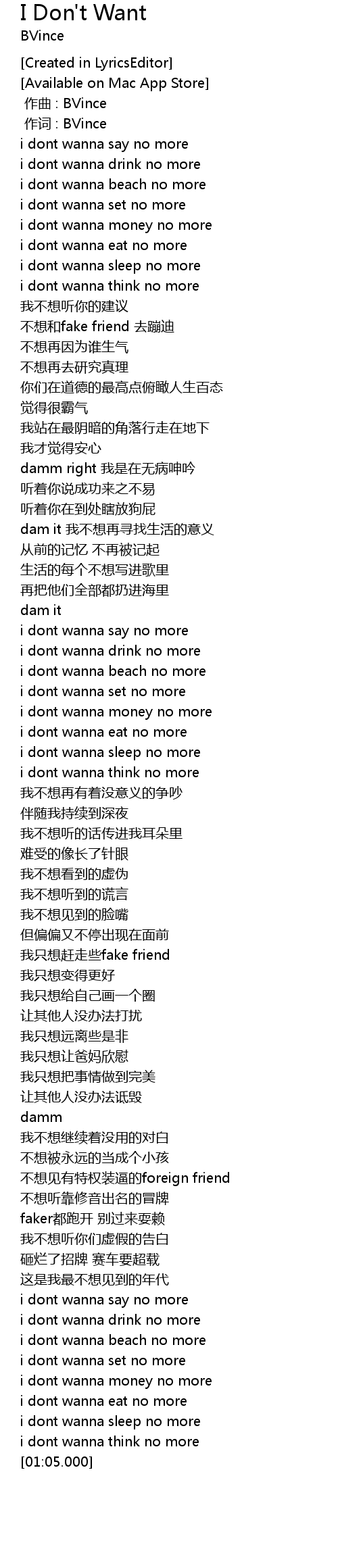 | [00:01.000] | 作词 : BVince |