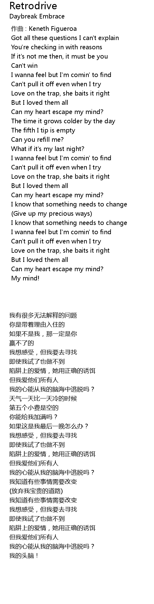 | [00:45.891] | I wanna feel but I'm comin' to find |