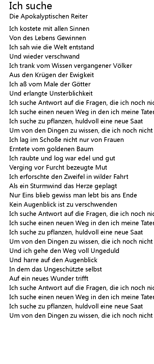 | Ich suche einen neuen Weg in den ich meine Taten brenne | |